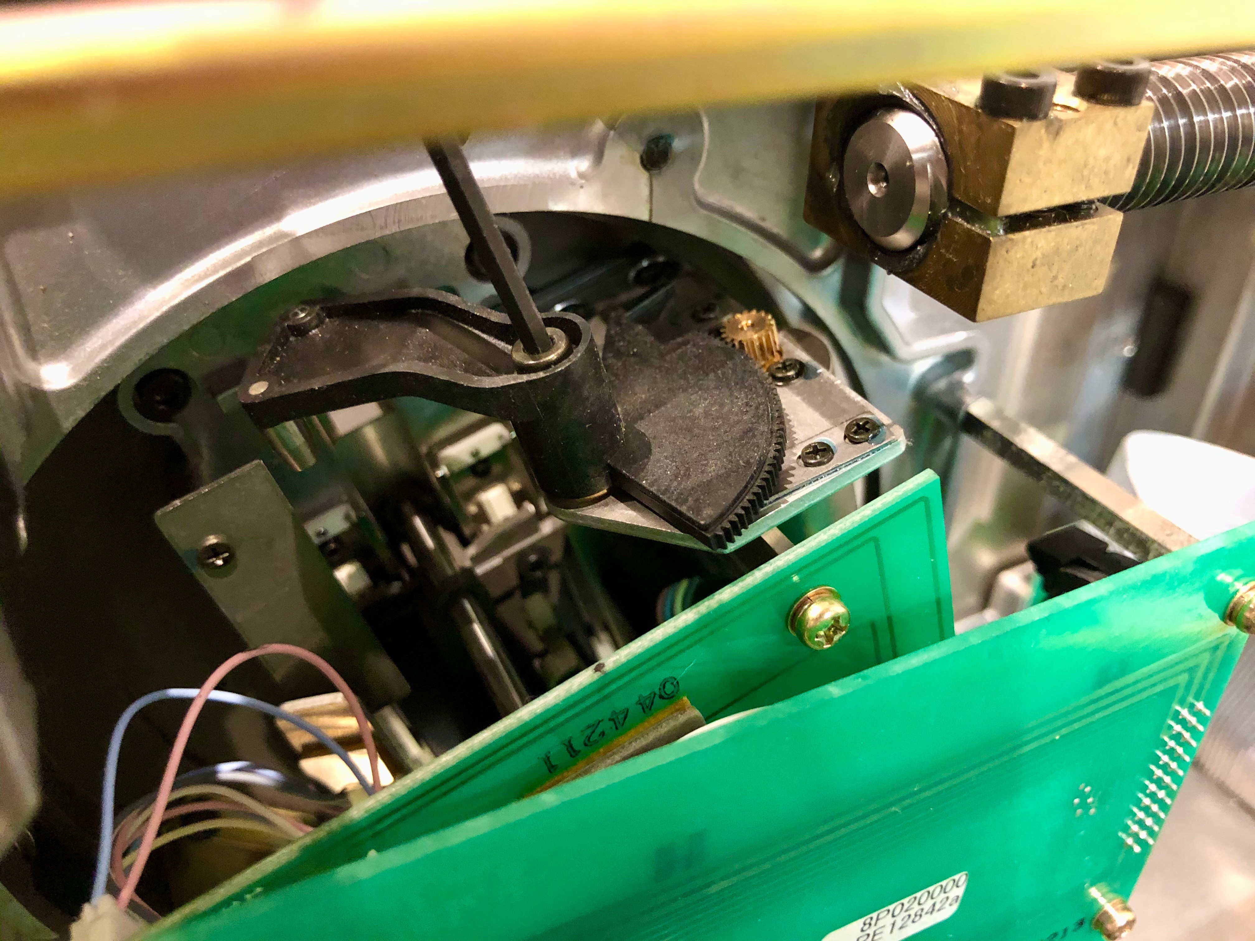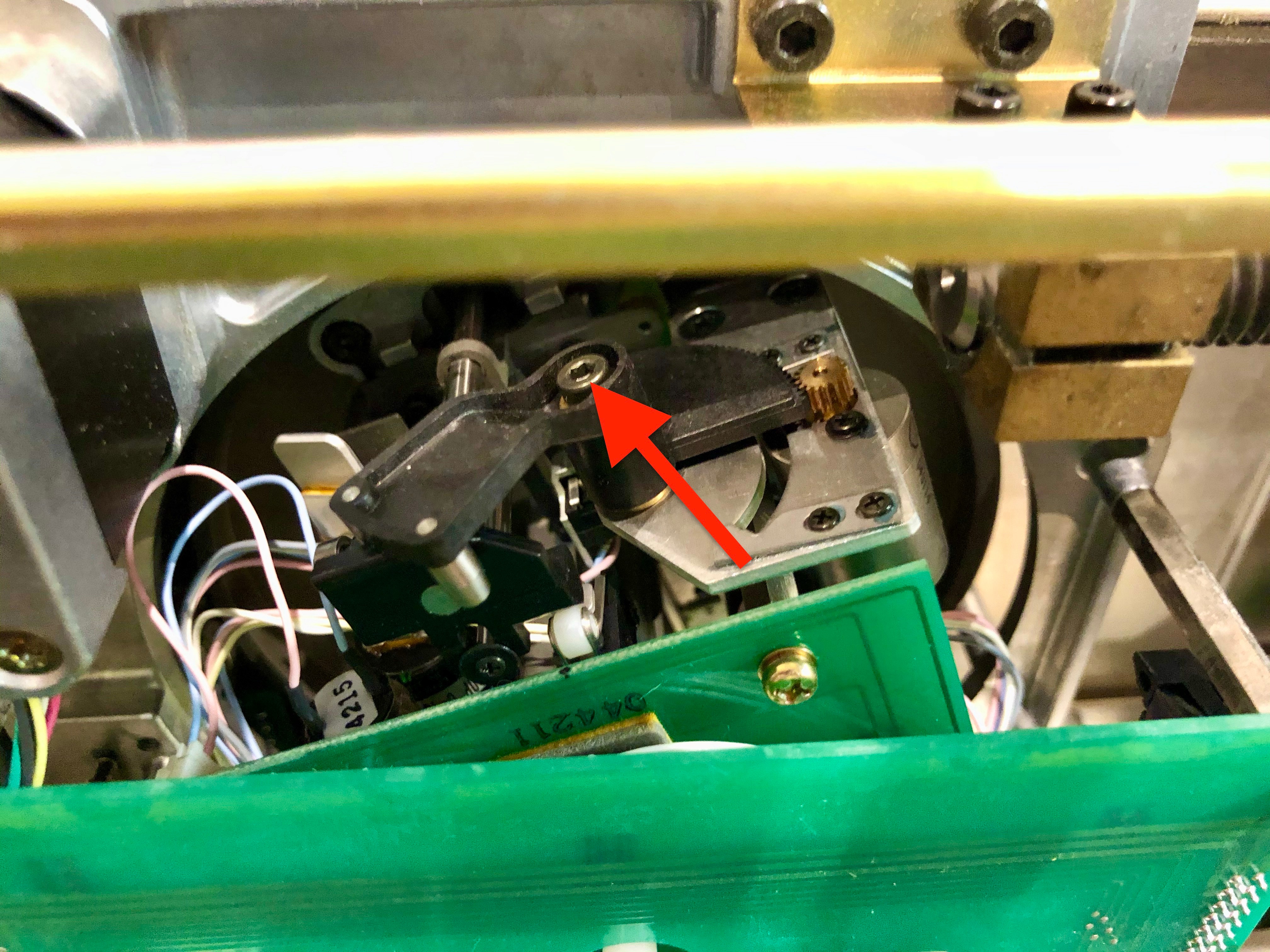 2. Con la llave allen de 2.5 quitar el tornillo allen de la palanca de pin que se indica en la imagen.