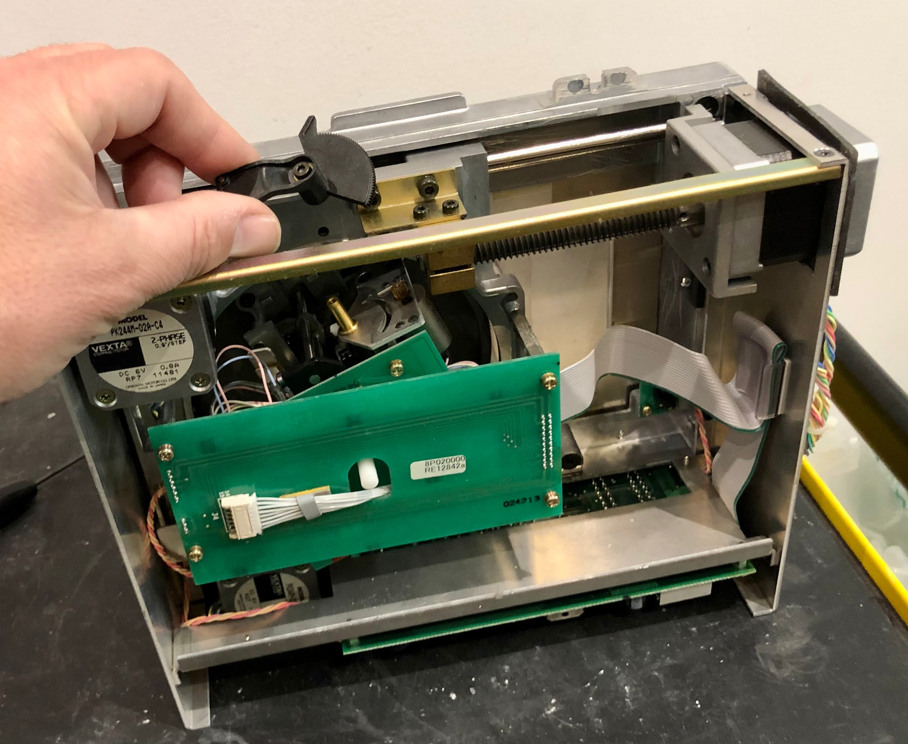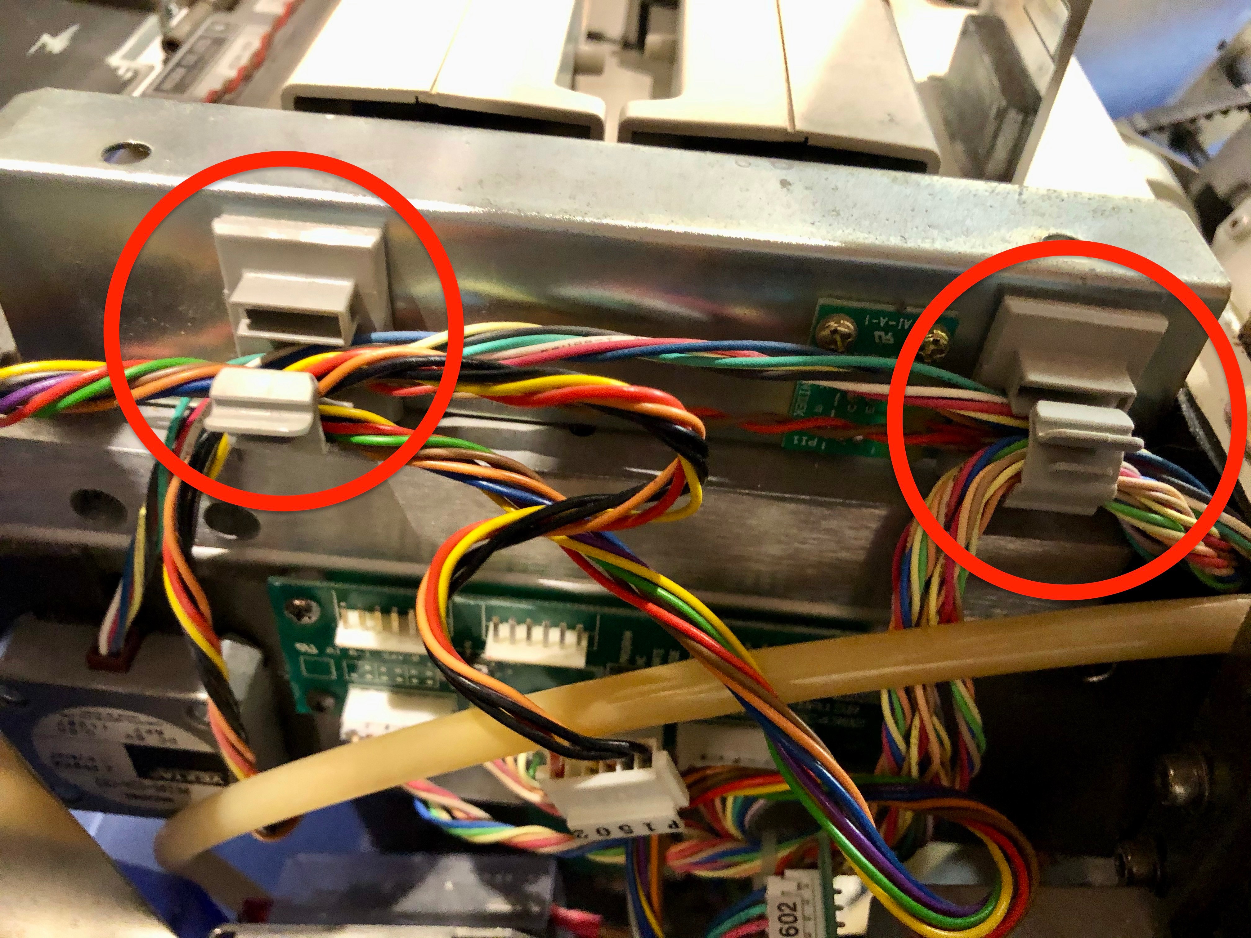 3. Con la mano, desconectar los 2 conectores de la placa de circuito impreso del lateral izquierdo del tracer.